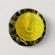 This pin-back button features a smiling faced yellow sun cast in shadow and sunlit against a dark background, but bright and sunny nonetheless. What a charming thought that the wearer will always be carrying some sunshine with them and sharing a cheerful smile.