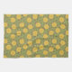A pattern made up of bright yellow sunflowers over a brown background.