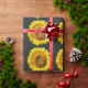 Bright Yellow Sunflower Floral Wrapping Paper. A Large Yellow Sunflower Modern Floral Pattern on Black Background Wrapping Paper.