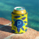 Bright Yellow Tropical Leaf Pattern Monogram Can Cooler