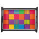 Serving tray with my design of boldly colored squares of red, orange, yellow, purple, green and turquoise.