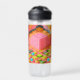 The bottle looks even better in real life. The ice cubes I put in lasts all day! I have my bottle with me all the time. It's summer and having something cold to drink feels amazing. With this bottle I always have something super cold. I have only tried the hot drink once and it lasted a long time as well. The color blue is a navy blue and the white printed on it is vibrant. It printed perfectly. I love my personalized smile water bottle.