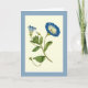 A fine art blank greeting card from the Curtis Botanical Magazine. An illustration of a small blue morning glory flower vine (Small Convolvulus or Bindweed).
