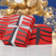 Bright scarlet red wrapping paper, with the image of a silver tree and a golden star. Unique wrapping paper for your unique gifts! From Scarebaby Design.