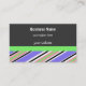 A cool design on a charcoal gray background. A border of diagonal stripes in green, blues, pink and black accent it. This border is on the back of card as well. Customize with all of your business information as desired.