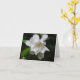On this notecard is a photo taken by Jackie Locke in the garden. The photograph features pure white blooms from a gardenia bush.
