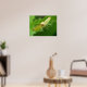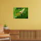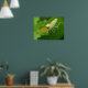 This lovely moth print features a detailed macro photograph of a small yellow coloured moth with brown markings perched on a hollyhock leaf. In the photograph you can see the underside of the moths wings, the fur on the top of its back, its bulging eyes and its brown and white legs. You can also see that it has unfurled its feeding tube to test whether or not the hollyhock leaf is food. Several sizes are available, this being the largest.