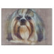 This brindle and white shih tzu dog is gorgeous on a background of muted brown and lavender. Customize by adding your own caption, name, or monogram to the product. The background is a muted brown and lavender and is a modified version based on the artwork of Karens Scraps and Graphics at Digital Scrap Designs.