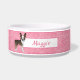 Brindle Boston Terrier Dog On Pink Hearts And Name Bowl