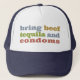 As from the infamous Sarah Palin emails: "Bring Beef, Tequila and Condoms". It's just a fun and silly reference but not much more is meant by it.