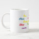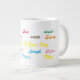 A lot of joyful and colorful words on this mug to help you bring you to your day or anyone else's day.