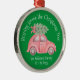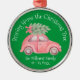 This ornament design features a red car with an evergreen tree on the roof. The text at the top reads, “Bringing Home the Christmas Tree”. There’s also room to add a personal message. All copy can be customized.