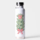 Add a little Christmas spirit to your water bottle. This holiday design features a red car with an evergreen tree. Underneath the text reads, “Oh Christmas Tree” and it can be customized. On the back of the bottle there’s an image of a Christmas tree.