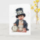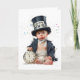 An adorable baby dressed as the traditional "Baby New Year" sits front and center, wearing an oversized black top hat that reads "HAPPY NEW YEAR." The baby sports a tattered tuxedo jacket and a white diaper, symbolizing the fresh start of a new year. With a vintage clock resting beside them, hands nearing midnight, and colorful confetti raining down, this heartwarming and whimsical scene captures the spirit of celebration, renewal, and hope for the year ahead. Perfect for a joyful New Year's greeting card.