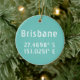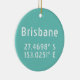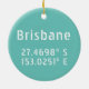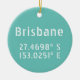 Modern keepsake with Latitude and longitude map coordinates for Brisbane QLD Australia in white modern urban font on aqua background