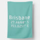 Latitude and longitude map coordinates for Brisbane QLD Australia in white modern urban font on aqua background