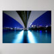 A vivid colour capture of the capital of Queensland, Australia's Captain Cook Bridge. This dramatic "From the Ground Up" perspective image is taken from a unique position directly underneath the enormous arches of the bridge extending overhead. The central business district of Brisbane city can be seen on the other side of the bridge's expanse