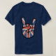 Cow says "moo," big rock salute hand with Union Jack says, "woo!" Color, t-shirts, sweats, cards, gifts.