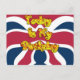 The Union Jack pattern provides a strong and recognizable visual context, enhancing the celebratory nature of the piece.
