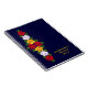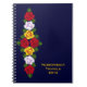 Based on the traditional 'roses and castles' design from the British canals folk art, these stylized roses were painted on the cabins, bows and cratch boards of working narrowboats. Yellow, red and white roses, on a dark blue background colour that can be changed to another, on a notebook to log your canal travels.