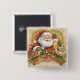 This British Christmas Party button features a funny watercolor illustration of Santa Claus at a cozy pub, surrounded by fairy lights, tinsel, and classic British cheer.