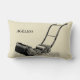 Perfect to accompany snoring gardener for his nap. Beautiful vintage British lawn Mower on nap pillow. Customizable 80th Birthday lumbar Pillow.