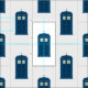 Custom fabric featuring a British police call box and a white backdrop.