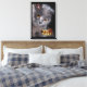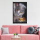 Gorgeous wrapped canvas of the artist's "Cat and the Feather" painting of a British Short-hair cat looking down at a golden hued feather floating in the air.