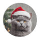 Cute blue/grey British shorthair cat wearing a Santa hat.
