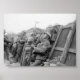 Soldiers of 4th East Lancs in trenches near Nieuport Bains. The Sergeant in the foreground has a periscope attached to his bayonet and is observing the German lines. Taken 8 September 1917.