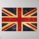 Poster with the British flag in vintage distressed grunge old style design. This scratched design features The Union Jack flag in retro vintage style. This United Kingdom flag design is a great way to show you are proud to be British.