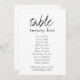 Designed to match our modern Brittany wedding collection, this simple table seating chart features hand-lettered black calligraphy script for the word "table" and stylish serif typography for the number itself. Below that is the list of guest names in alphabetical order. At the bottom are your names and wedding date. Change the table number on each card and add to your cart individually using the text template. Be sure to browse the other matching items in the collection to create a chic, coordinated look for your wedding day. If you need help customizing this sign or would like me to create other matching products, please contact me at dawn@albamarie.com. I'd be happy to help!