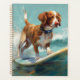 Immerse yourself in the playful world of canine adventure with this captivating painting. A spirited dog takes to the waves, skillfully riding the surf on a sun-kissed beach. The vibrant artwork beautifully captures the essence of beachside excitement as the dog fearlessly rides the waves, embodying the spirit of fun and freedom. With a harmonious blend of colors and dynamic brushstrokes, this piece brings the joy of surfing and the beach right into your space, making it a delightful addition to any art collection