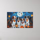 Unleash the spooky spirit with this eerie Halloween design featuring a pack of dogs under a dark, moonlit sky, surrounded by flying bats and glowing pumpkins. Perfect for those who love a touch of frightful fun with their furry friends!