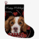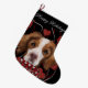 Perfect! Exactly what I ordered! I uploaded a picture of my blue chow, and the screen print was incredible. the back side of the stocking was the red and black checkered print. my puppy's name was also printed on the cuff of the stocking. PERFECT! Highly recommend this product! My puppy's name was screen printed onto the cuff of the stocking, the font was perfect!