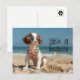 Brittany Spaniel puppy wearing sunglasses on the beach. A fun postcard. Message "Life's a beach!" can be removed or replaced with your own message.