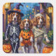 Adorable Brittany Spaniels dressed in playful Halloween costumes carry pumpkin buckets while trick-or-treating under the moonlit sky. This festive design highlights the breed’s athletic frame, cheerful spirit, and affectionate nature, perfectly capturing the spooky yet fun atmosphere of Halloween night. A delightful celebration for dog lovers and Halloween fans alike.