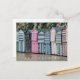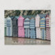A beautiful view of colorful beach huts in Broadstairs in England printed on a postcard.