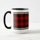 Coffee mug with the tartan for Clan Brodie and its septs, including Bridie and Byrd. Red and black Scottish plaid pattern from 1820, with bright yellow gold accents.