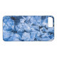 Closeup view of the natural ice. A pile of small pieces of ice of blue color. Mobile phone case for anyone.