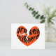 Postcard with red heart saying "Broken but still here." Bring out your emotions with this postcard and show people that a broken heart cannot stop you from anything.