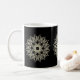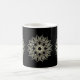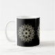 A mandala with geometric lace patterns, round overall shape with lace napperon look. A broken white color for a dark background.