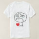 Broken heart comic face. Colors: blue, black, white and red. Rage comic guy with with tears in his eyes, holding a heart. Upset, heart broken, sad.