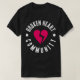 My 11 yo wore adult XL (5’7” 165#). The 8yo is small framed. She wore adult small and tied it in the back. Grandma wore adult large with long sleeve shirt underneath. Tall girl adult medium. Dark haired male adult large. Good quality dark Heather gray, Gildan brand shirt. -it was next up from basic choice and cost about $20 per shirt. Not too thick or thin. Washed and dried well, no major shrinkage. Not see-through. Can wear a bra under it fine. Screen print is just as shown and well done, front and back.