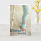 Photograph of a colorful blue full-leg cast on my niece, on a card to wish "Get Well" to an injured friend.