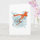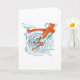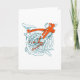 A greatings card featuring an original drawing in blue and orange of a folded Brompton Bicycle.