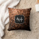Bronze brown copper faux glitters sparkle Monogram Throw Pillow