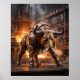 Powerful and unstoppable, this bronze bull design features cast bronze armor, reinforced steel joints, glowing eyes, lowered horns, and steam venting from its nostrils. Standing before a blazing furnace gate of molten metal, catwalks, chains, smoke, and flying sparks, the bull symbolizes wealth, strength, and determination. Perfect for offices, finance spaces, studios, and masculine interiors. A commanding statement piece for fans of industrial décor, bullish energy, and premium mechanical animal art.