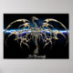 Celebrate your love of dragons! This design called, Bronze Dragon on Lightning Sky, is a wonderful design for anyone who loves dragons! The background is black with a lightning bolt running across it with blue clouds patterns towards the top and purple towards the bottom. In front of that is a dragon in bronze. A cool conversation piece for your home decor. Personalize it with your name or leave the customization blank to remove.