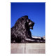 A sculpture of a bronze lion on the plinth at the foot of Nelson's Column, Trafalgar Square, London, England